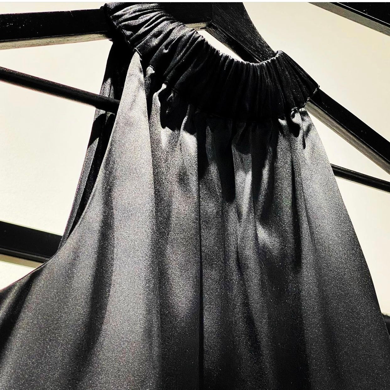 A shoulder-baring top made from a soft, stretchy silk. This halter uplifts every look with its shirred collar and soft draping
