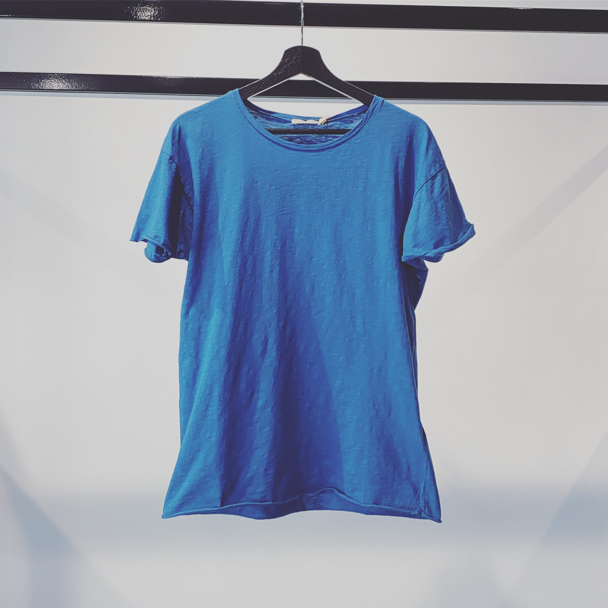 Made in Portugal, this solid crew neck t-shirt has a relaxed silhouette created from a slubby, organic cotton jersey with roll up hems at sleeve and bottom.