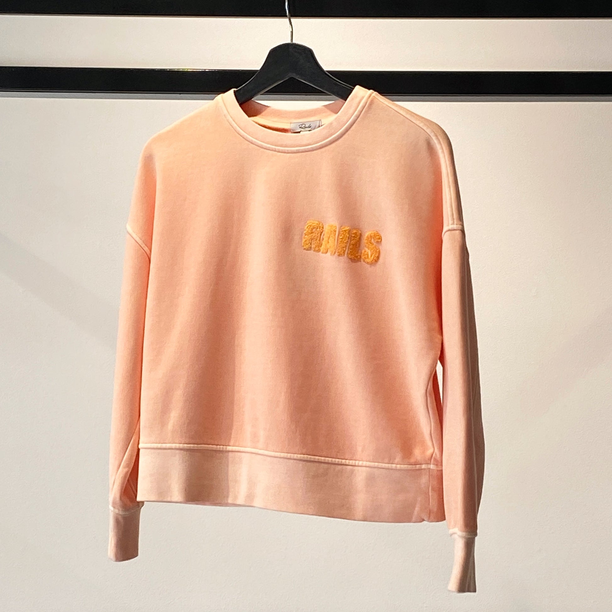 Resort ready, vintage athletic wear inspired pullover sweatshirt in flamingo pink, perfect for spring. Made from super soft vintage terry, this crew neck sweatshirt has a boxy fit, dropped shoulder, and tall rib trim at cuffs and hem.