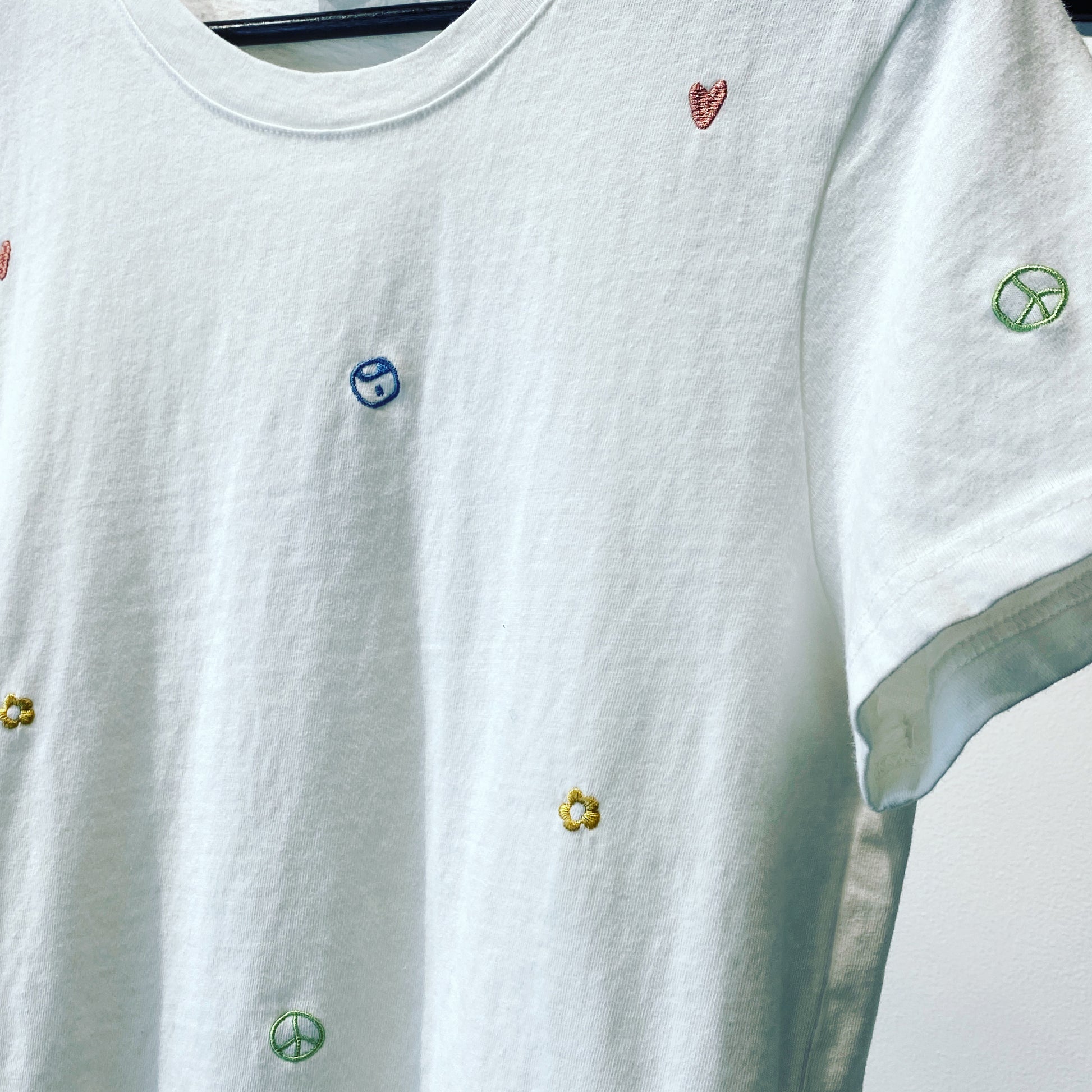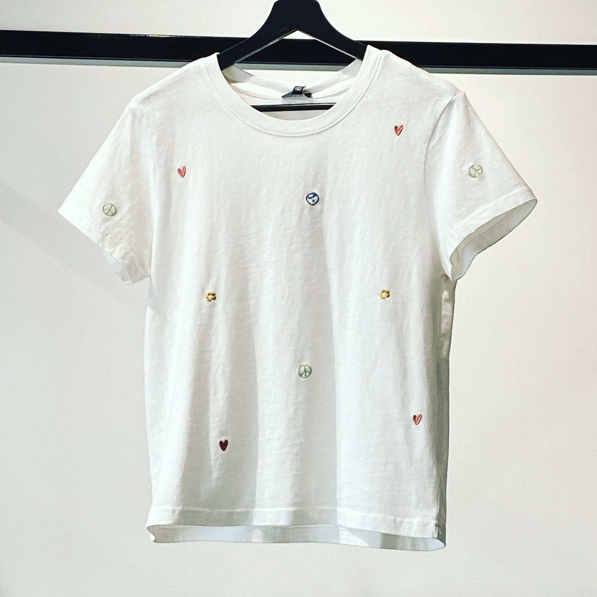 Your new go-to, this timeless white tee comes in a crewneck silhouette and features small embroidered symbols throughout. This super soft crewneck tee is made from brushed cotton, perfect for everyday comfort and breathability.