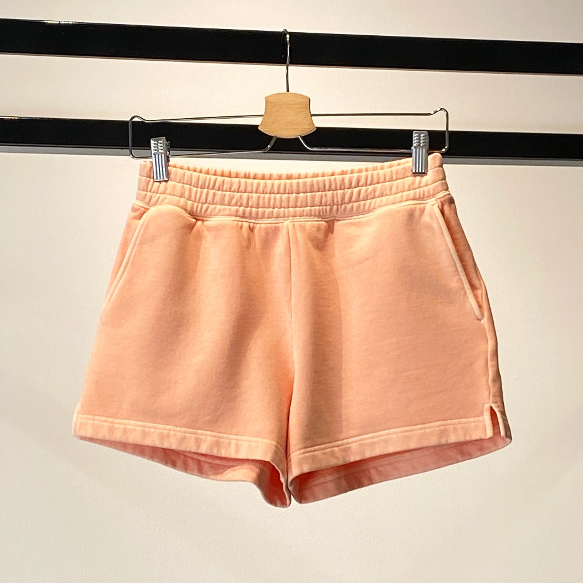Resort ready, vintage athletic wear inspired pullover shorts are perfect for running errands or lounging poolside. Made from super soft vintage terry, these high rise flamingo pink sweat shorts feature a single patch pocket at back.