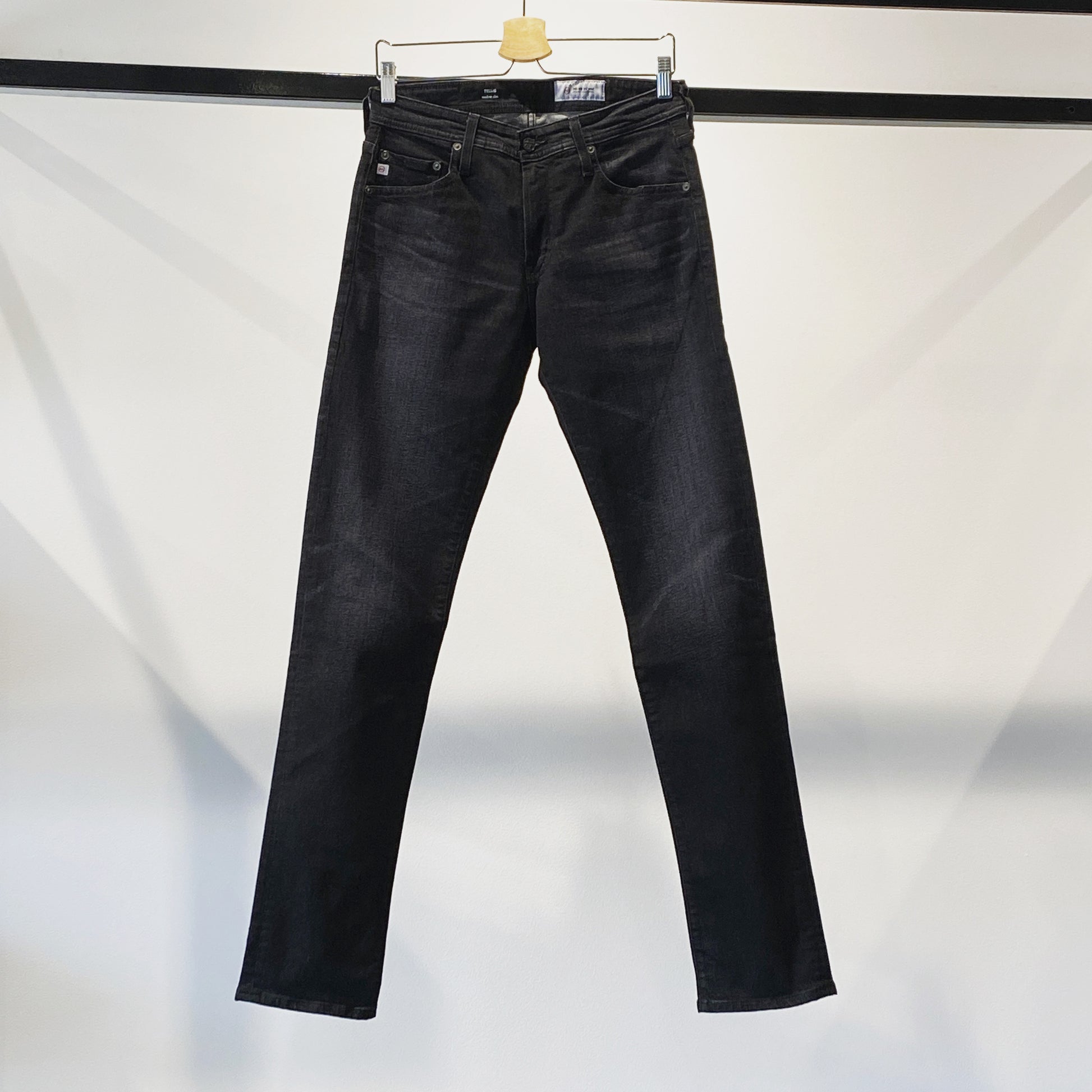 This modern slim jean features a black denim hue with gentle fading, cut with a fitted upper block and tapered leg opening. Designed in 11 oz. Static Stretch Denim.